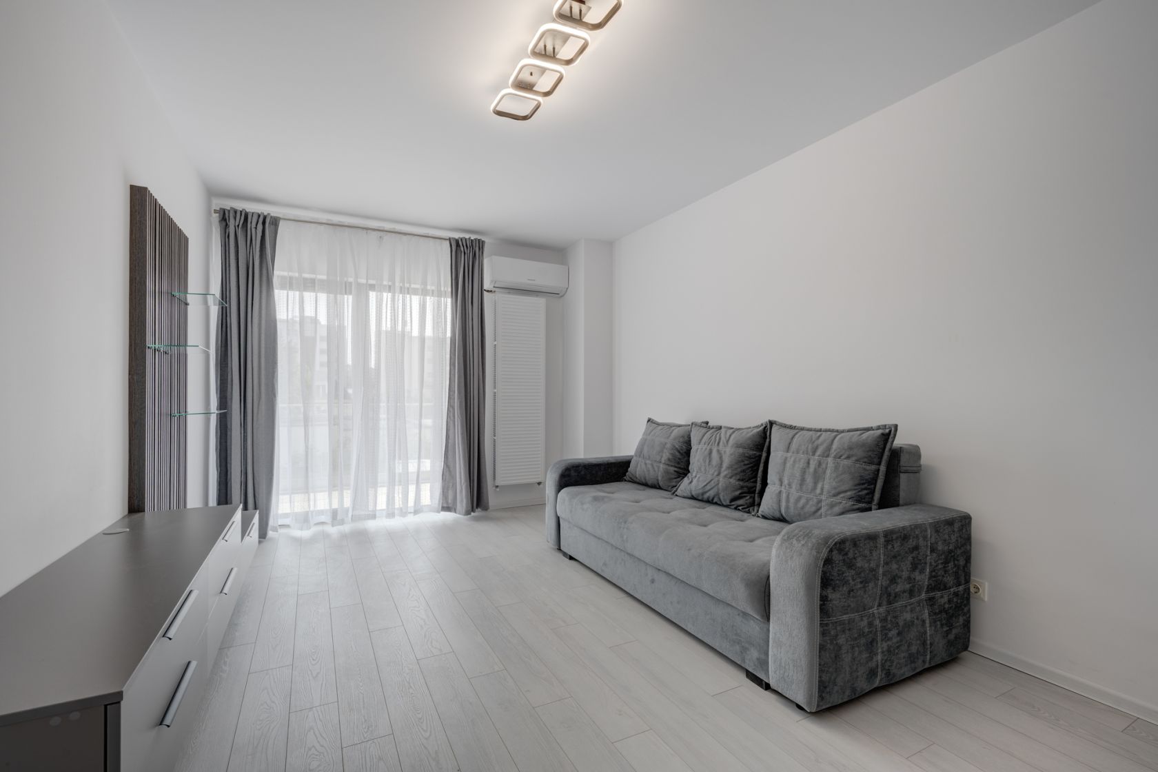 Garsoniera este situata la etajul 2/11, este complet decomandata, cu o suprafata totala de 48,1 mp, din care 38 mp sunt utili, la care se adauga o terasa superba in suprafata de 10 mp. Garsoniera are finisaje si dotari noi. Inclazirea se realizeaza prin centrala termica proprie iar pentru racire s-a instalat 1 aparat de aer conditionat.