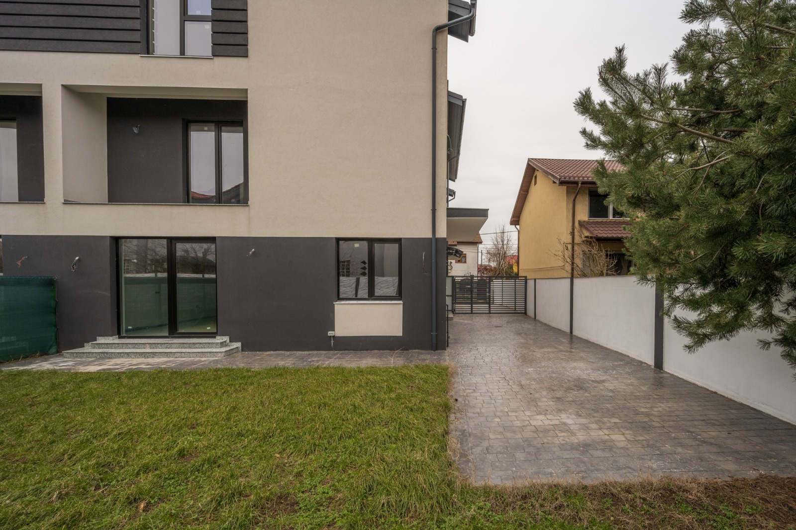 Accesul către curte se face din living, curtea fiind în suprafata de 99 mp , separat fata de aceasta exista si un lot de aprox 30 mp unde se pot parca 3 masini